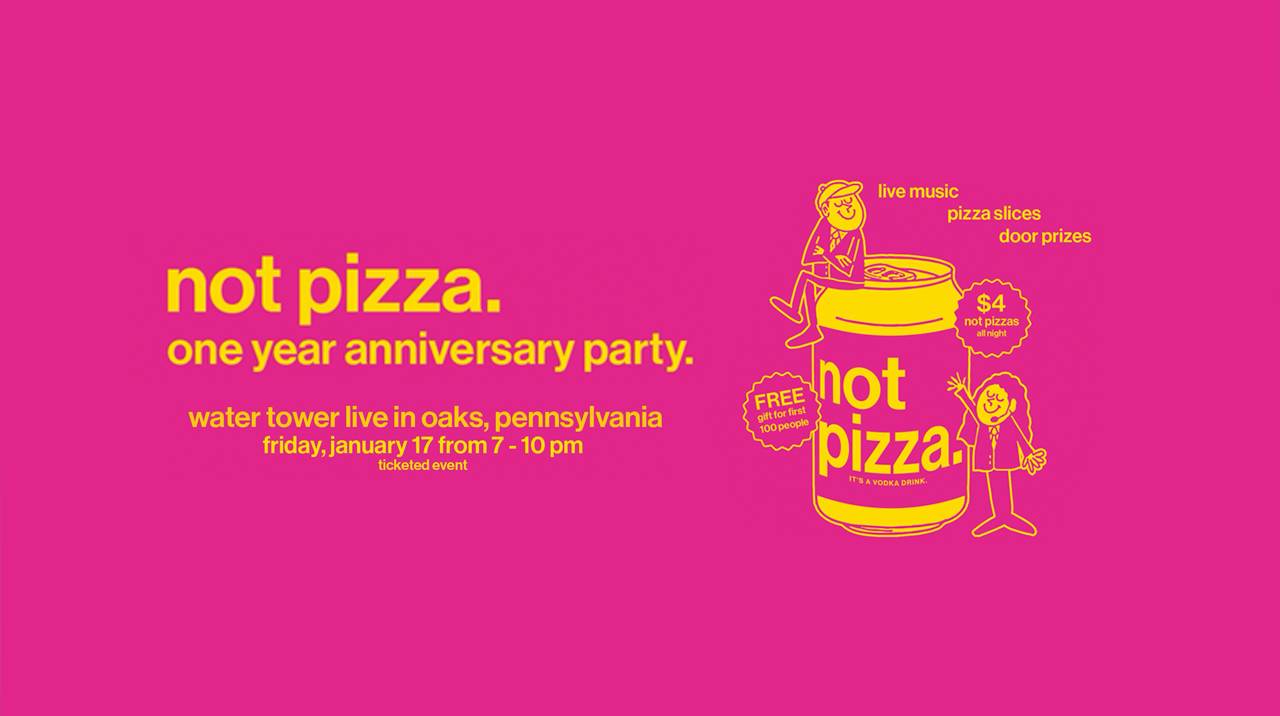 We made it! Can you believe it's been one full year since Not Pizza launched and started shaking up the canned vodka drink game? To everyone who has supported us, followed our journey, and grabbed a case (or three!)βthis party is for you!